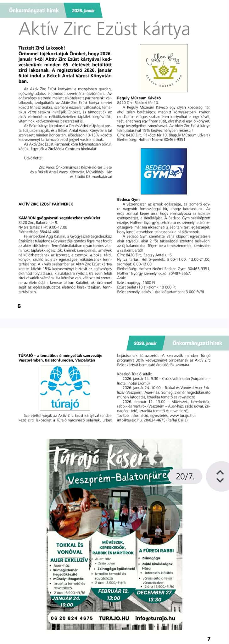 Örömmel tájékoztatjuk Önöket, hogy 2026. január 1-től elindul az Aktív Zirc Ezüst Kártya!