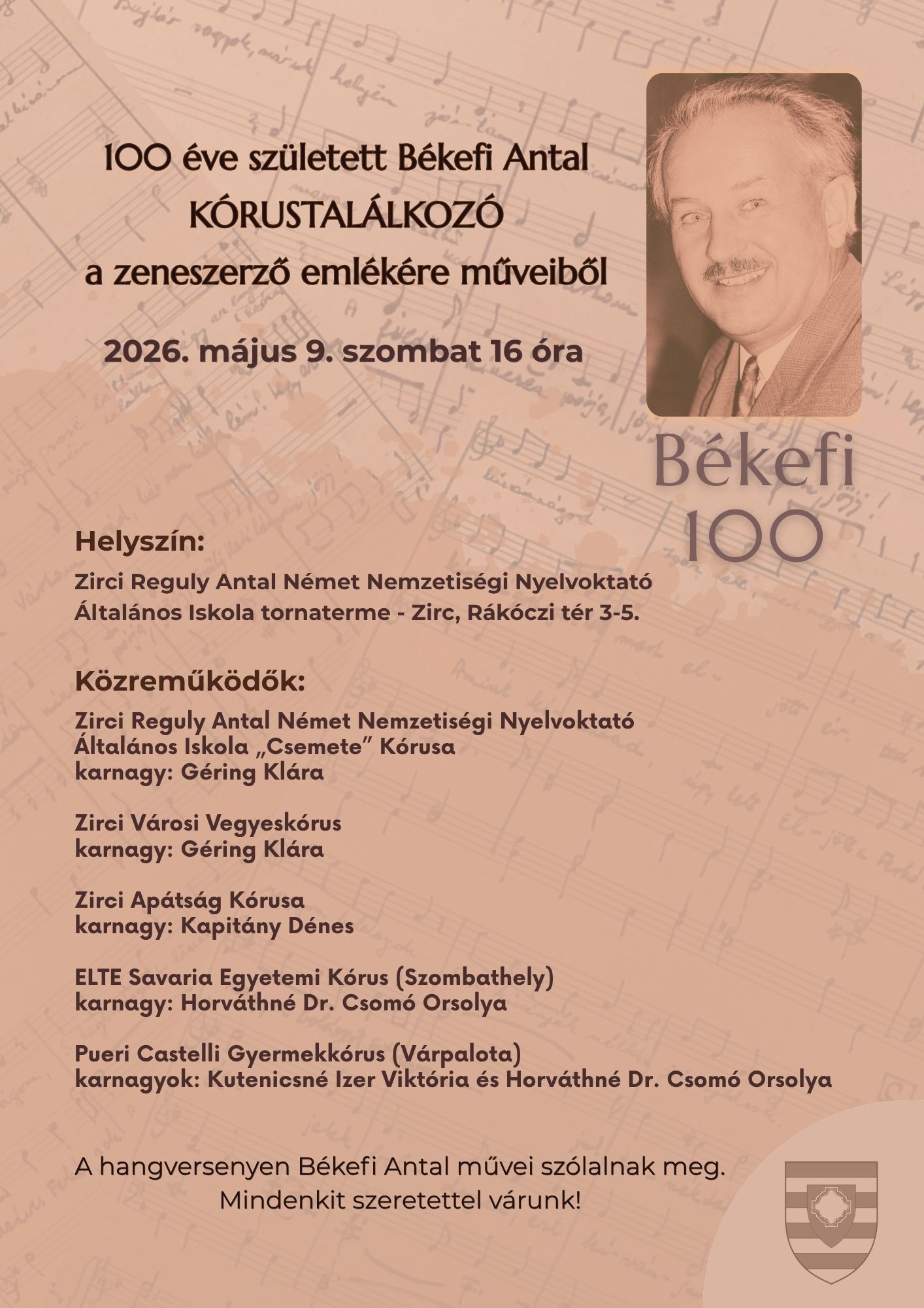 Május 9-én, szombaton 16 órakor különleges hangversenyre készülnek a térség kórusai: az est középpontjában Békefi Antal művei állnak majd, amelyek több generáció és többféle kórus hangján szólalnak meg. A koncert igazi közösségi zenei élményt ígér, hiszen több elismert együttes lép színpadra.