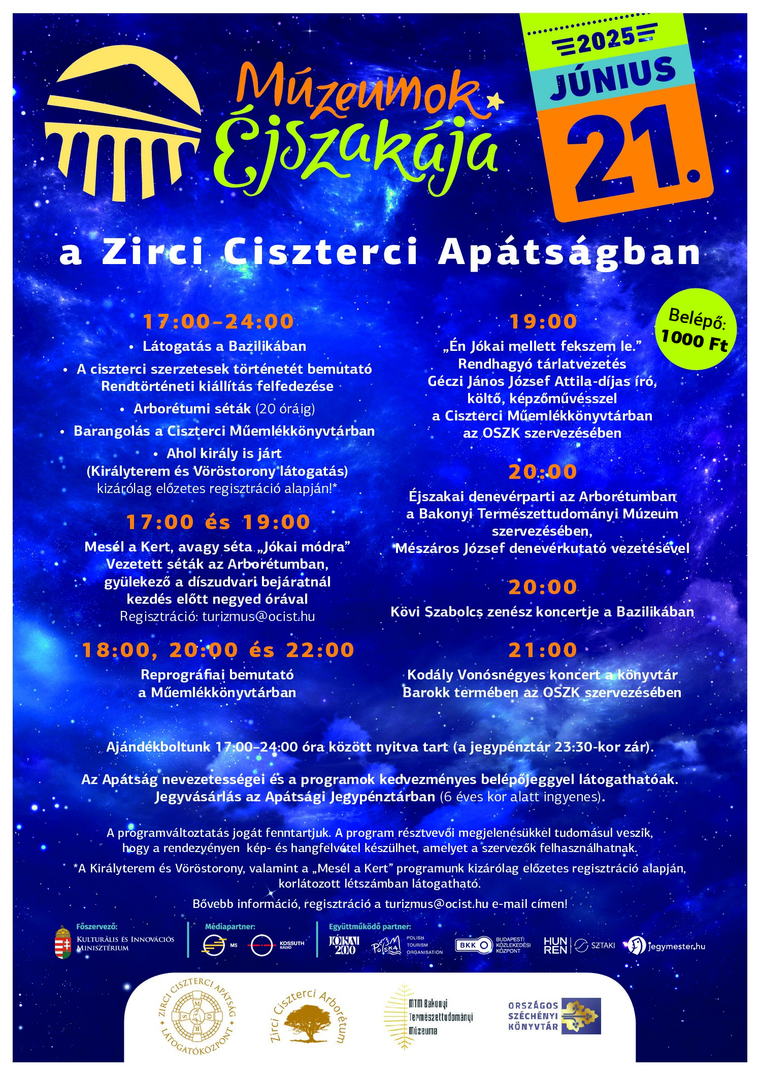 A program a Zirci Ciszterci Apátság belépőjegyével, vagy a Bakonyi Természettudományi Múzeumban megváltott belépőjeggyel látogatható!