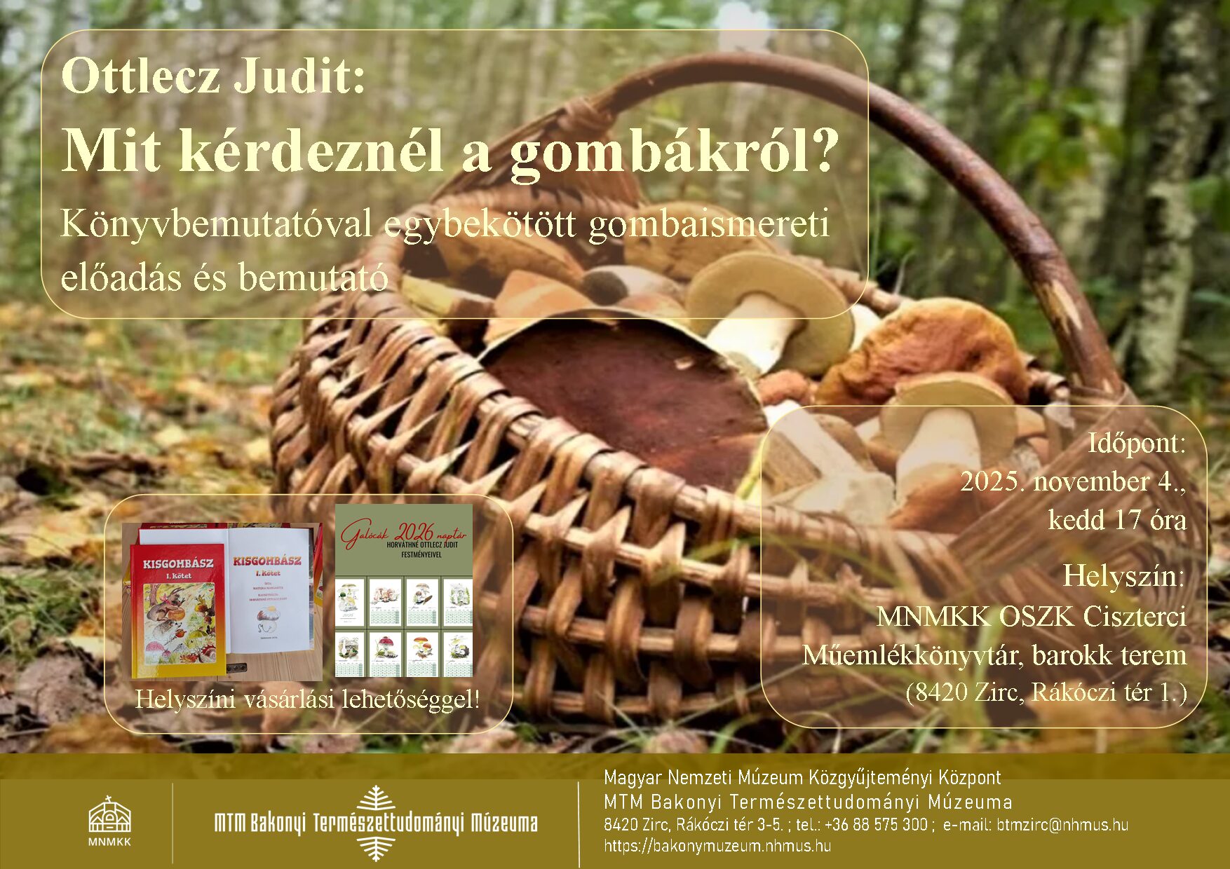Ciszterci Műemlékkönyvtár Rákóczi tér 1., ZircSzeretettel várják az érdeklődőket Ottlecz Judit "Mit kérdeznél a gombákról?" című interaktív gombaismereti előadására, amely egyúttal a nemrég megjelent "Kisgombász" című gyerekverses gombaismereti könyv bemutatója is, melynek előadónk a társszerzője és illusztrátora is egy személyben.
