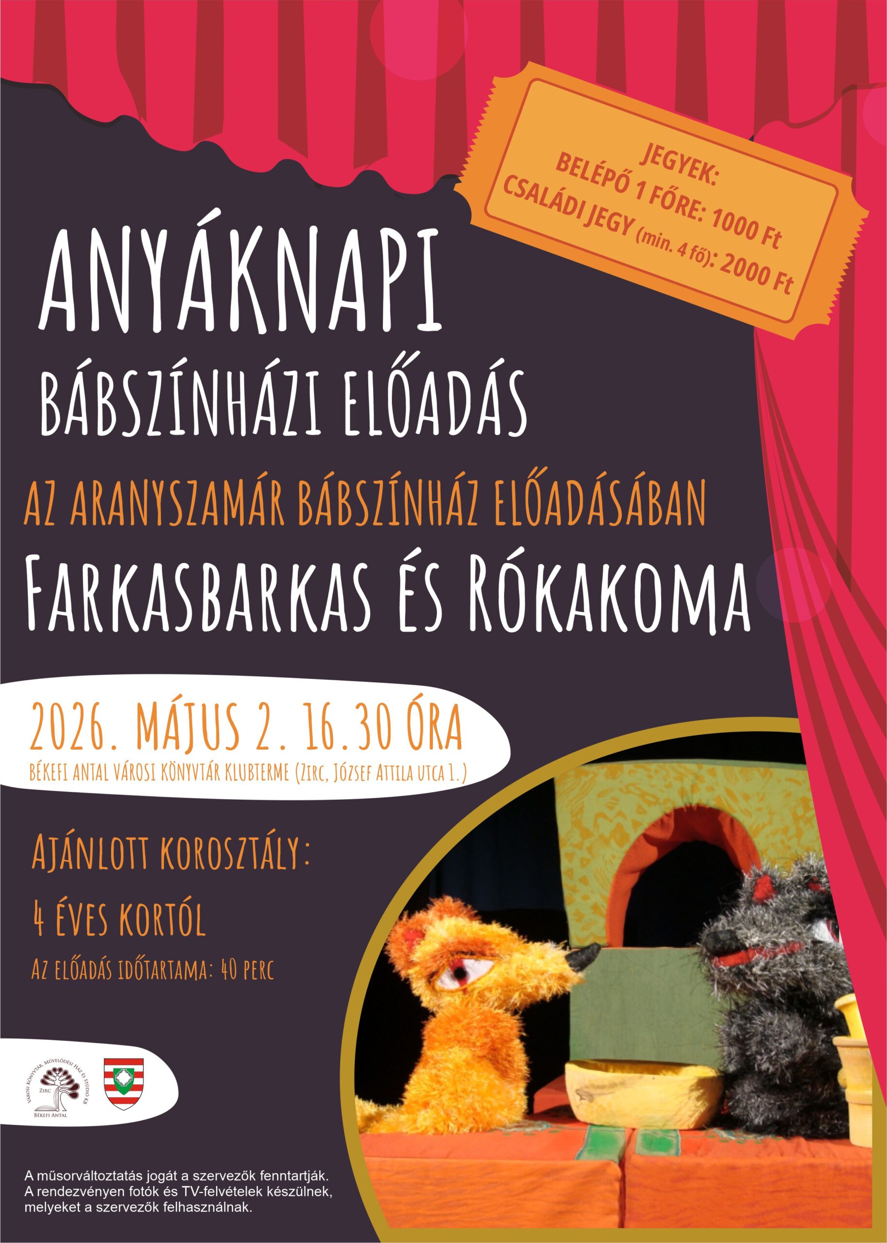 A nap egyik különleges színfoltja a „Farkasbarkas és Rókakoma” című bábelőadás lesz a zirci Békefi Antal Városi Könyvtárban 16 óra 30 perctől, amely humorral és tanulsággal szól barátságról, furfangról és hiszékenységről. A történetben a ravasz róka újra és újra túljár az erős, ám naiv farkas eszén – ám ezúttal talán másképp alakulnak a dolgok.