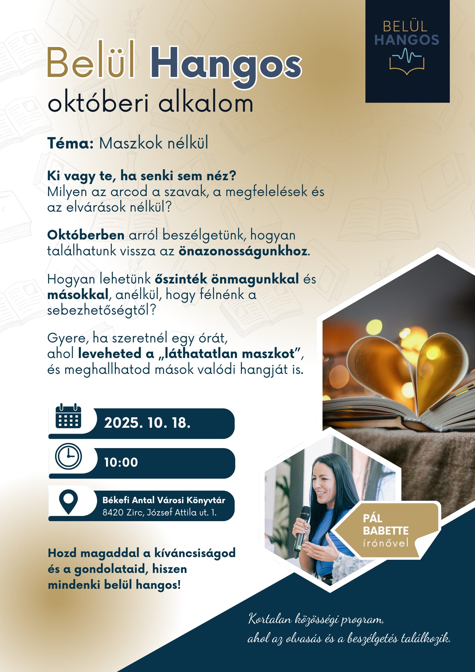Ki vagy te, ha senki nem néz? Gyere, ha szeretnél egy órát, ahol leveheted a "láthatatlan maszkot", és meghallgatod mások valódi hangját is.