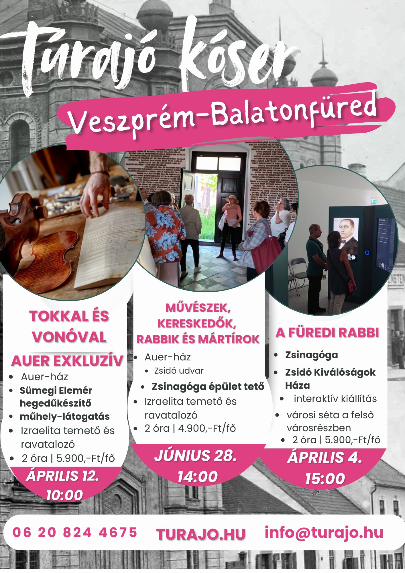 A programkínálatban több tematikus séta is szerepel Veszprémben és Balatonfüreden. A résztvevők többek között bepillanthatnak a veszprémi zsidó örökség helyszíneibe, megismerhetik az Auer-ház történetét, vagy Balatonfüreden a rabbi életéhez és a zsinagógához kapcsolódó emlékeket fedezhetik fel.