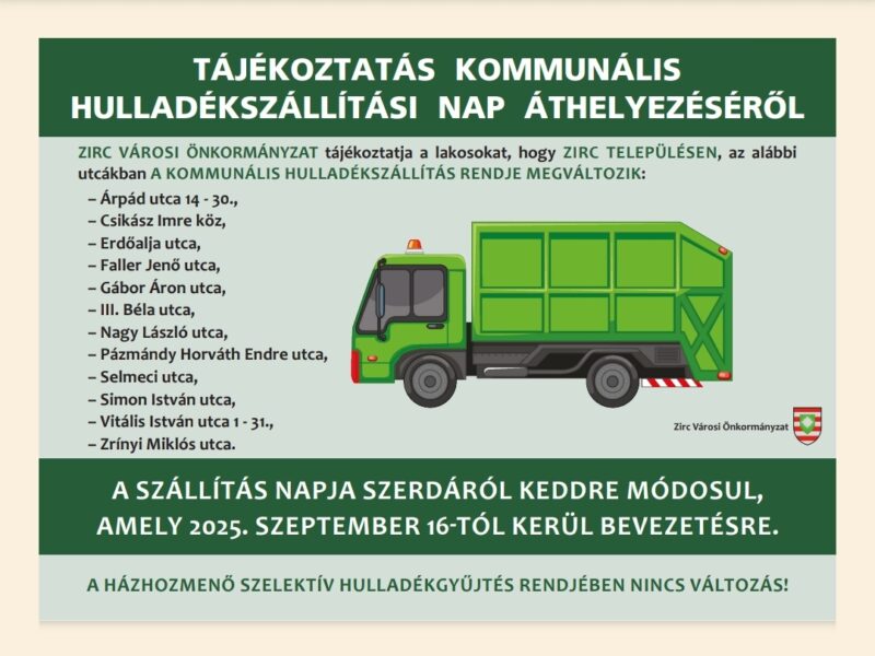 Szeptember 16-tól módosul a kommunális hulladékszállítás rendje