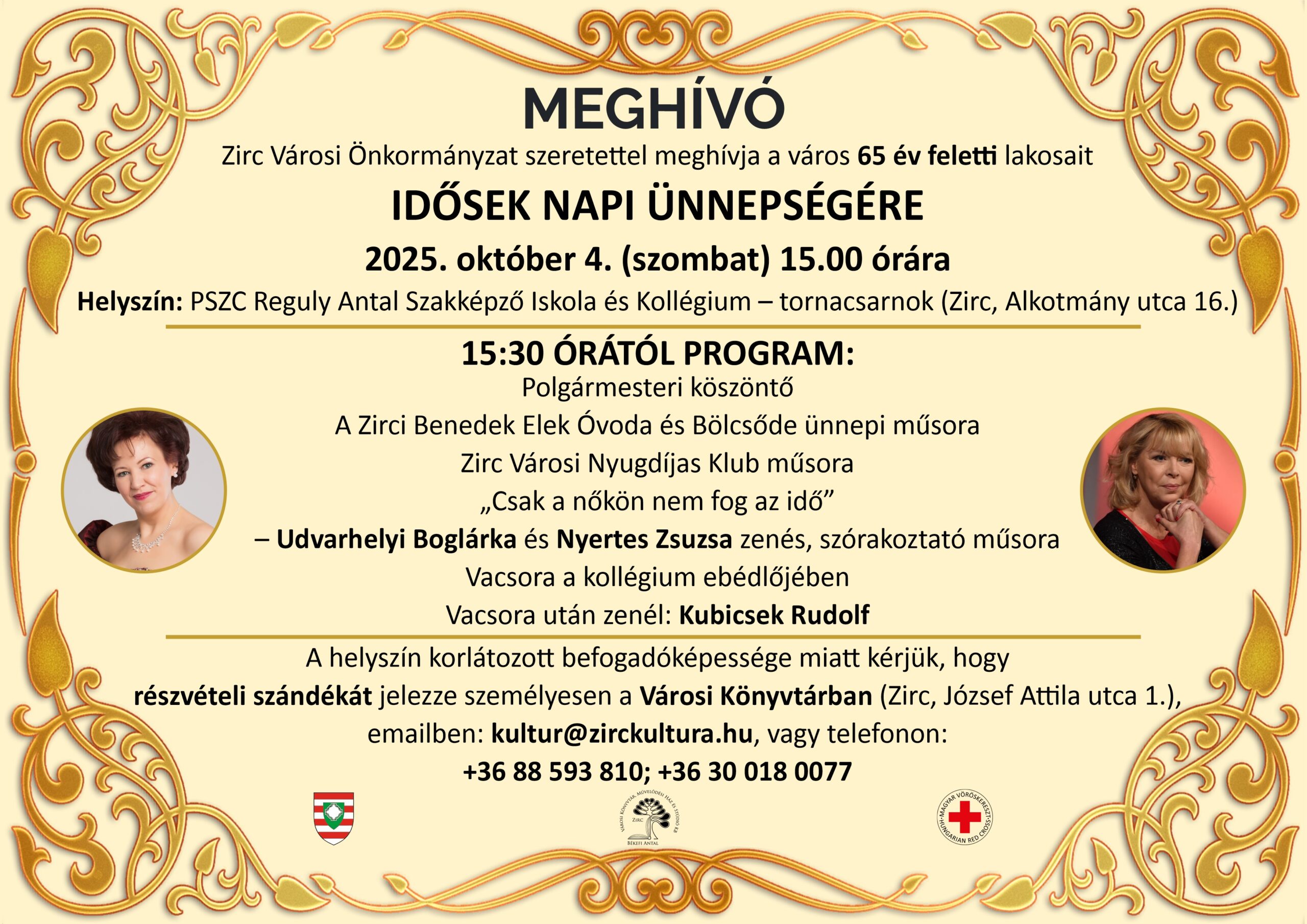 A Zirc Városi Önkormányzata szeretettel meghívja a város 65 év feletti lakosait Idősek napi ünnepségére