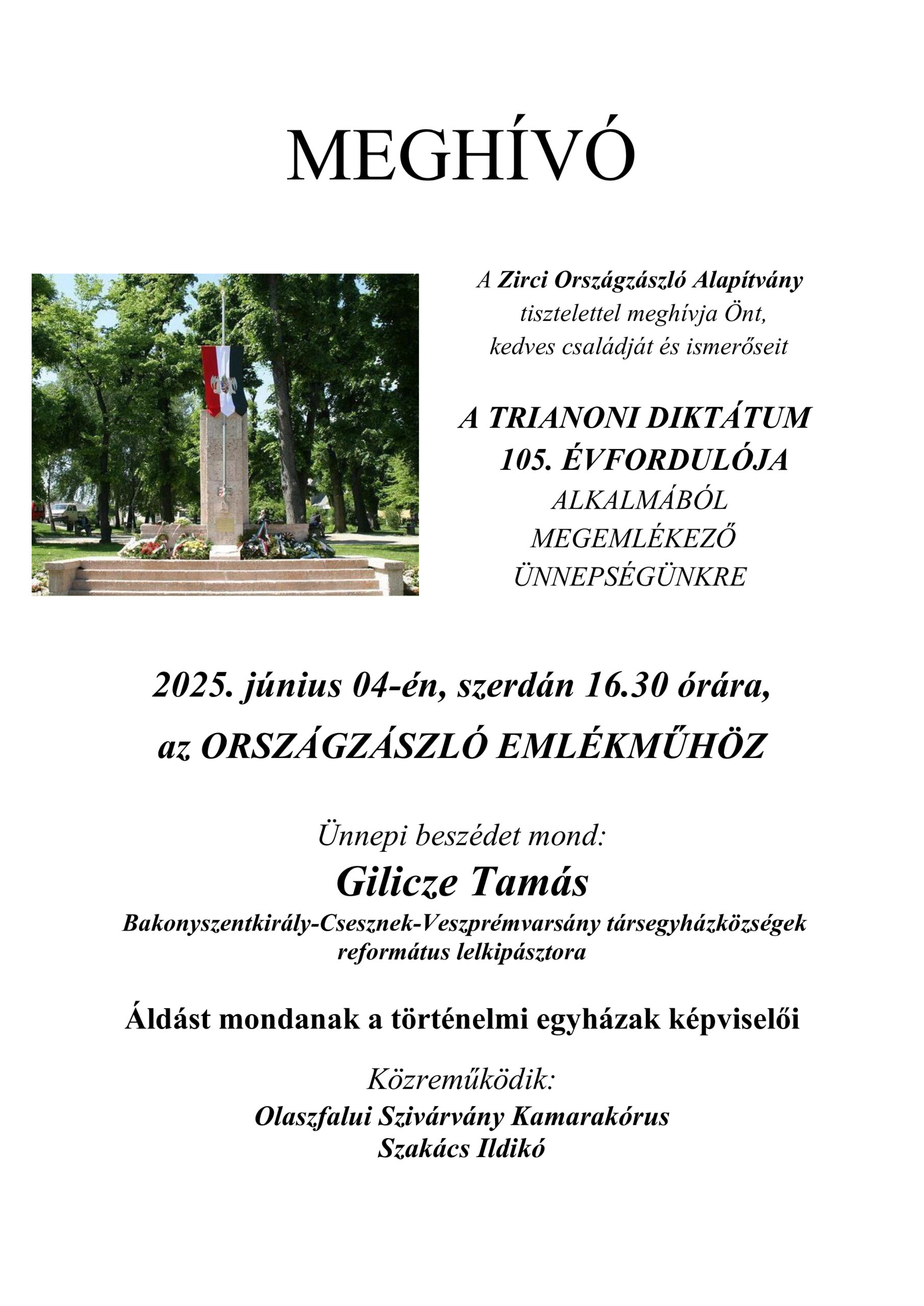 Megemlékezés a Trianoni Diktátum 105. évfordulója alkalmából