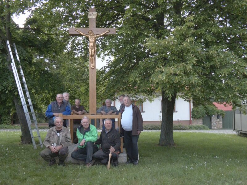 Mondhatjuk, a Zirci Országzászló Alapítvány innen indult el, hiszen 2003-ban ez a Patkó vendéglő előtt található 200 éves fa kereszt felújítása volt az első értékmegörző munkájuk. Most, 22 év elteltével ismét itt ragadtak szerszámot az alapítvány tagjai.